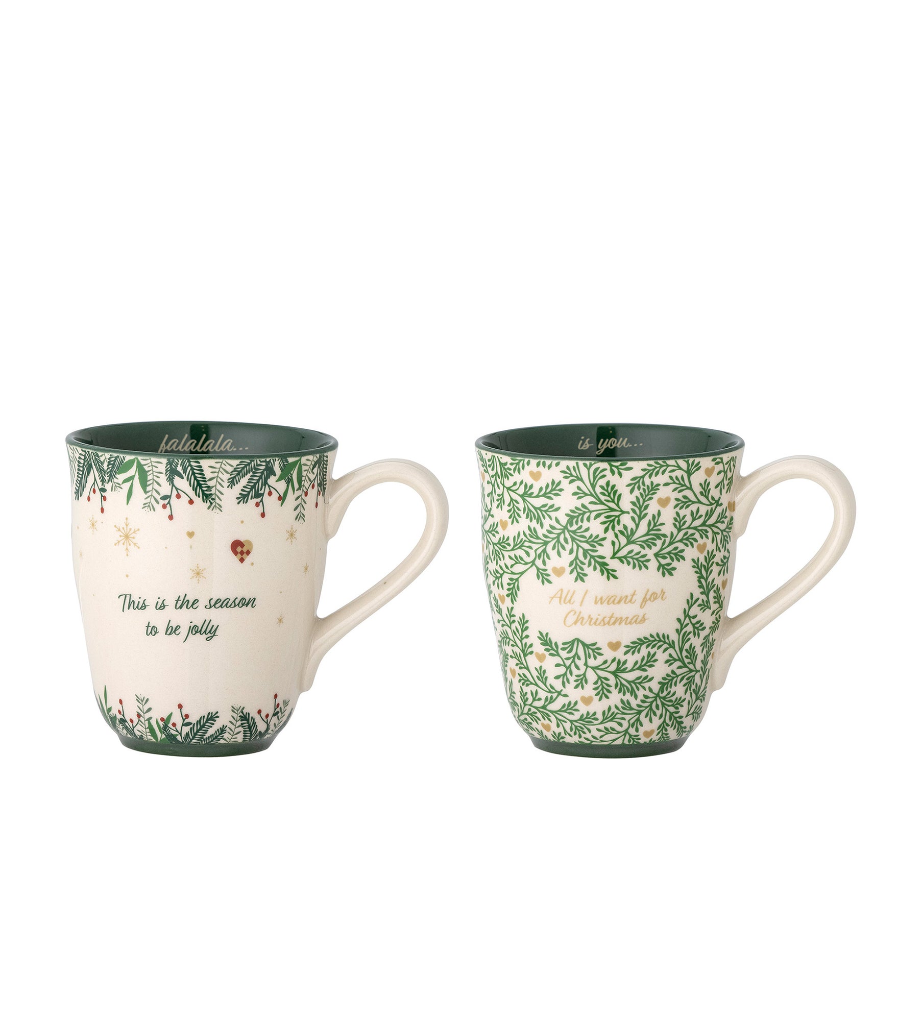 Die Becher Grazia von Bloomingville sind eine gemütliche Ergänzung für Ihre Küche. Die Becher sind aus Steinzeug in klassischen Weihnachtsfarben gefertigt.